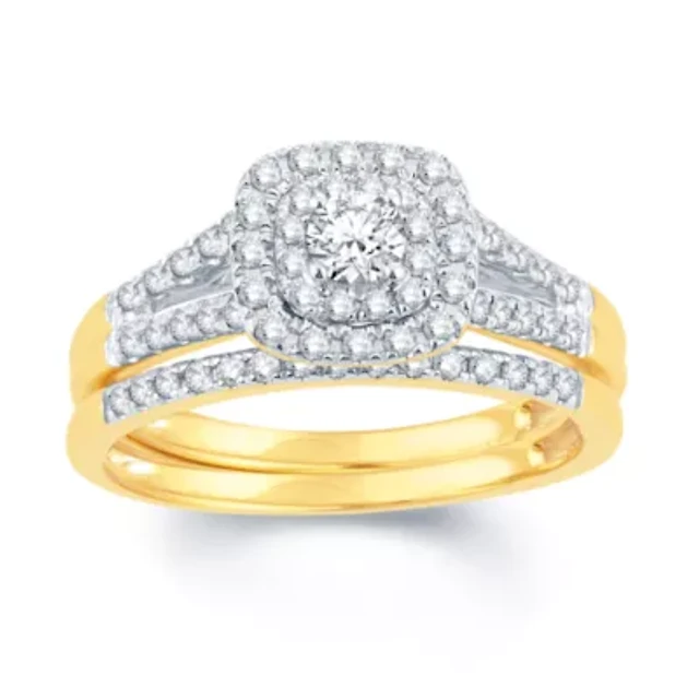 Womens 1/ CT. T.W. Natural White Diamond 10K Gold Round Bridal Set