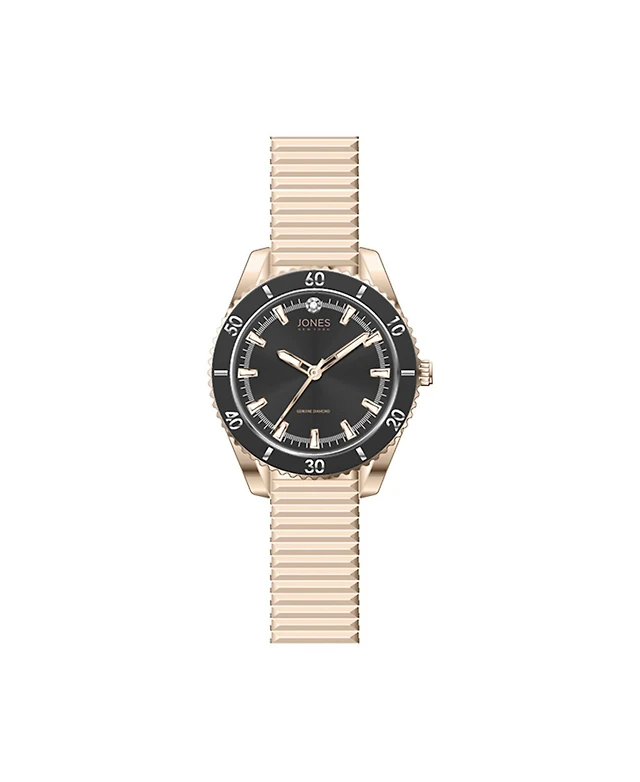 Jones New York Women's Genuine Diamond Black Dial and Rose Gold-Tone Expansion Metal Bracelet Analog Watch 34mm