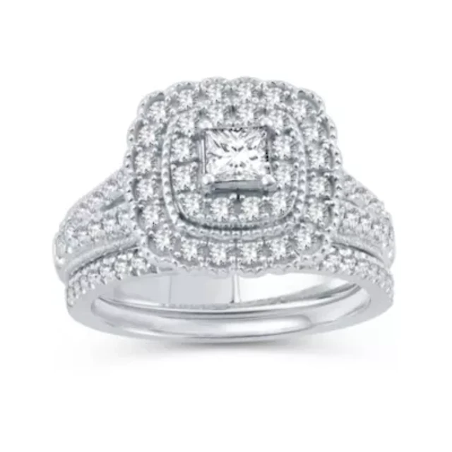 DiamonArt® Womens 2 1/2 CT. T.W. Cubic Zirconia 14K Gold Over Silver Halo Bridal Set