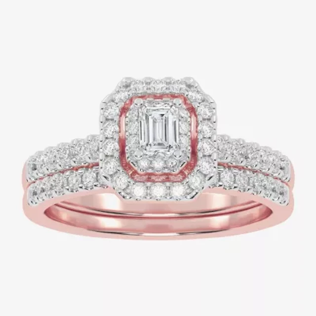 Surrounded by Love Womens 1/5 CT. Natural White Diamond 14K Rose Gold Over Silver Heart Side Stone Halo Bridal Set