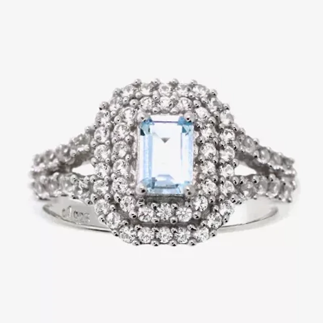 Womens 2 CT. T.W. Blue Cubic Zirconia 14K Gold Over Brass Cocktail Ring
