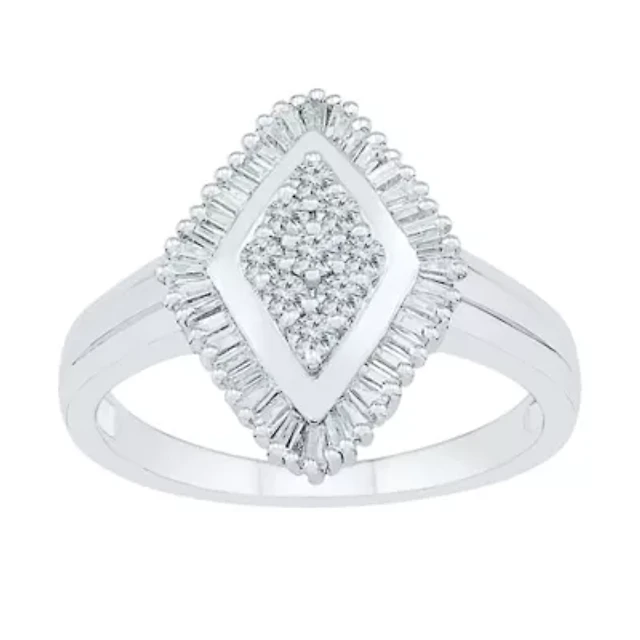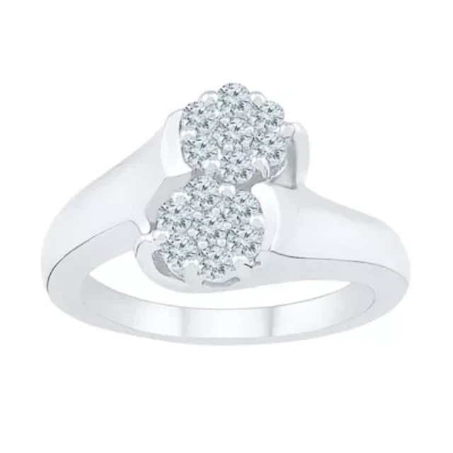 Womens Diamond Accent Natural White Sterling Silver Flower Cocktail Ring