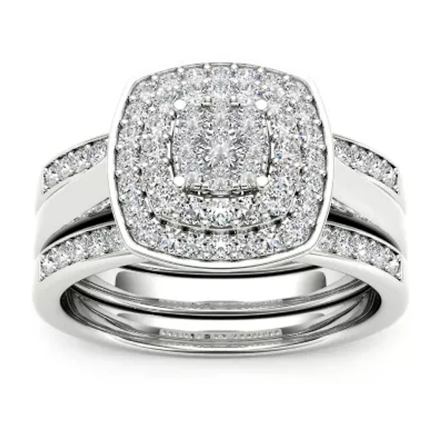 Womens Lab Created White Sapphire Platinum Over Silver Cocktail Ring