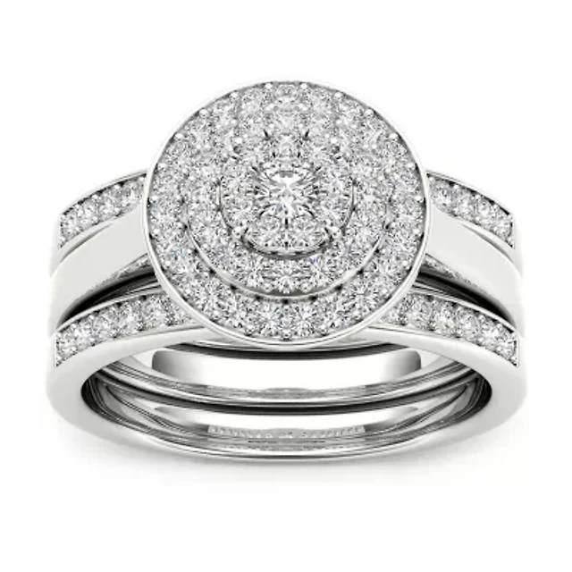 Diamond Blossom Womens 1/4 CT. T.W. Natural White 10K Gold Halo Cocktail Ring