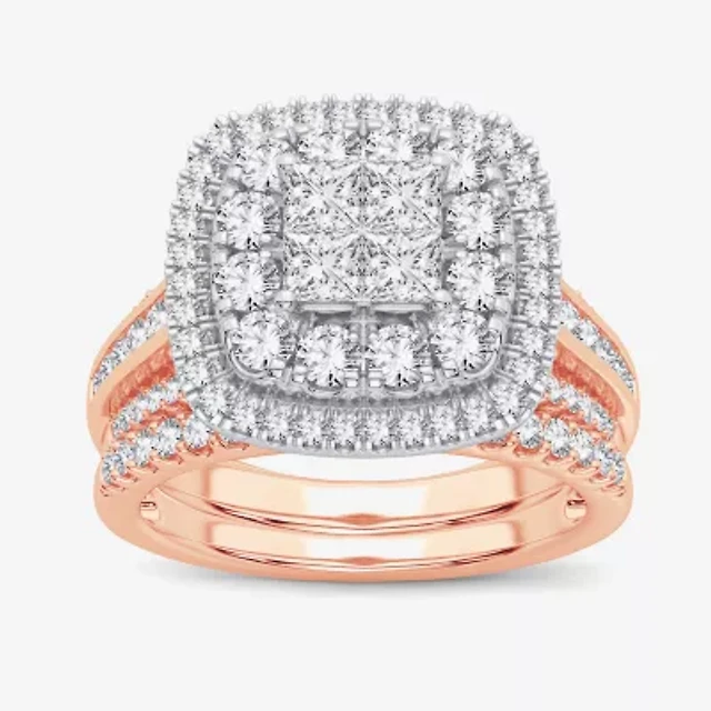 Limited Edition! Womens 1 CT.T.W. Natural Diamond 10K or 14K Gold Cushion Halo Bridal Set