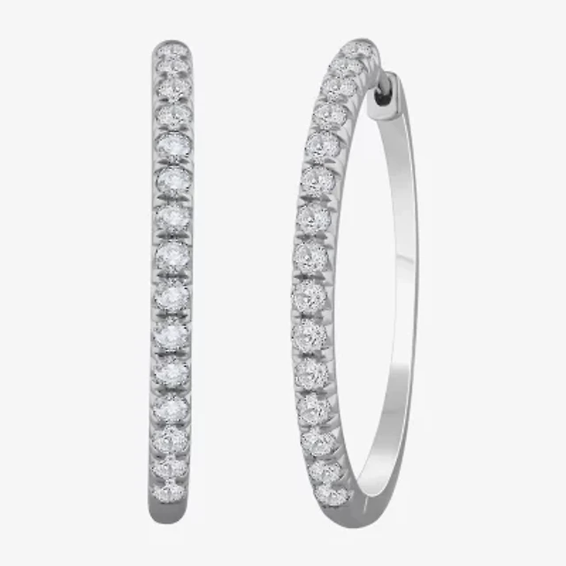 Effy Final Call Womens 1/3 CT. T.W. Natural White Diamond Sterling Silver 16.6mm Hoop Earrings