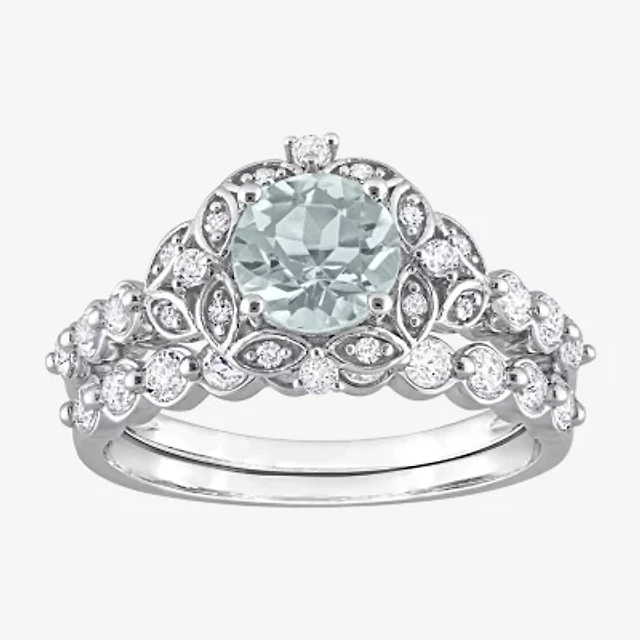 Signature By Modern Bride (H-I / Si1-Si2) Womens 1 1/5 CT. T.W. Lab Grown White Diamond 10K Gold Round Side Stone Halo Bridal Set