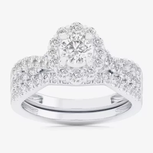 Signature By Modern Bride (G-H / Si1-Si2) Womens 1 1/3 CT. T.W. Lab Grown White Diamond 10K Gold Oval Side Stone Halo Bridal Set