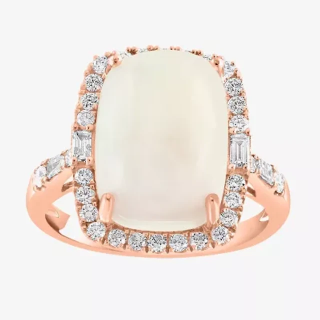 Womens Genuine White Opal Sterling Silver Halo Cocktail Ring