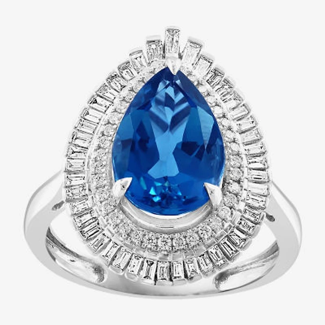Effy Final Call Womens Genuine Blue Topaz & 1/2 CT. T.W. Diamond 14K White Gold Pear Halo Cocktail Ring