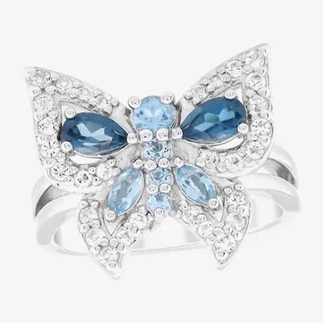 Womens Genuine Blue Topaz Sterling Silver Butterfly Cocktail Ring