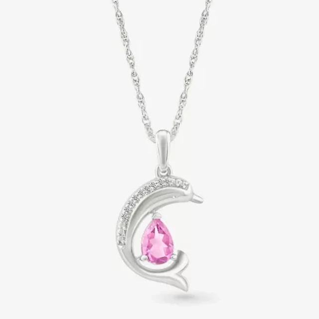Womens Diamond Accent Lab Created Pink Sapphire Sterling Silver Heart 18 Inch Pendant Necklace