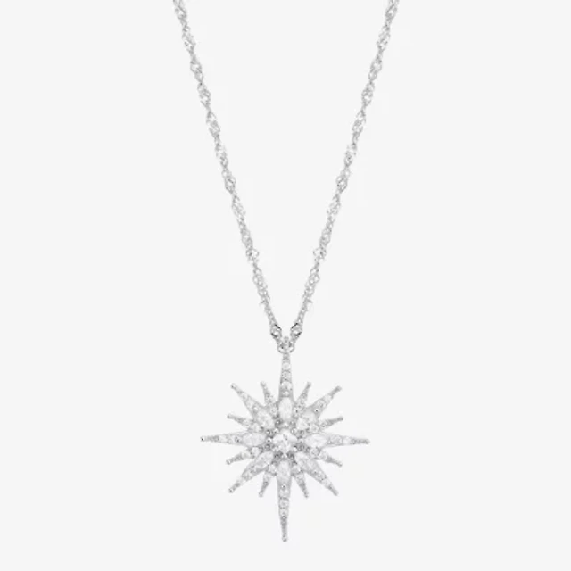 Womens 1/10 CT. T.W. Lab Grown White Diamond 14K Gold Over Silver Sterling Silver Sunburst 18 Inch Pendant Necklace