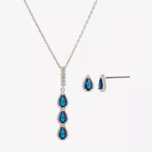 Sparkle Allure Halo Womens Blue Cubic Zirconia Pure Silver Over Brass Pear 2-pc. Jewelry Set