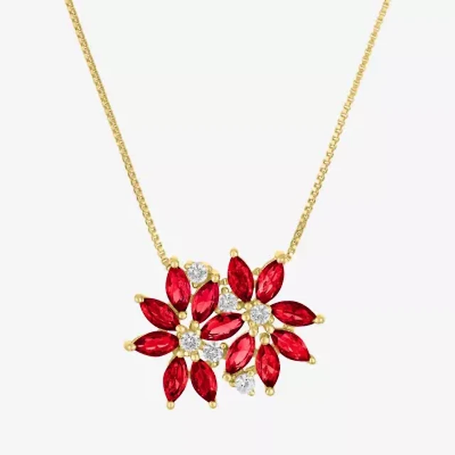 Womens Gemstone Sterling Silver Flower Pendant Necklace