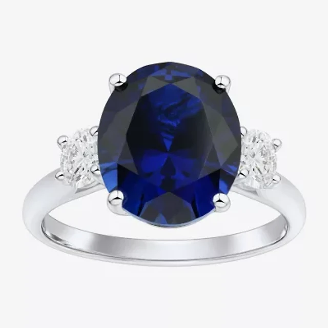 Womens Gemstone & 3/8 CT. T.W. Lab-Grown Diamond Sterling Silver Oval 3-Stone Cocktail Ring
