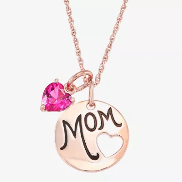 Womens Lab Created Red Ruby 14K Rose Gold Over Silver 18 Inch Pendant Necklace