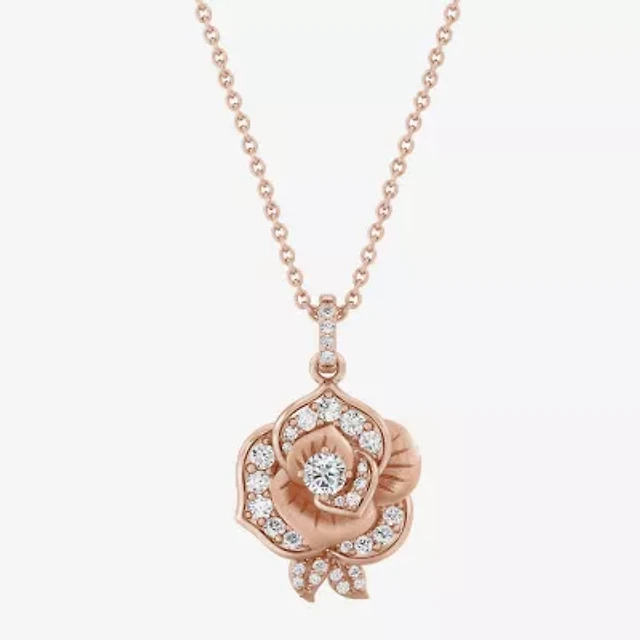 Rose (I, I2) Womens 5/8 CT. T.W. Lab Grown White Diamond 14K Rose Gold Over Silver Flower 18 Inch Pendant Necklace