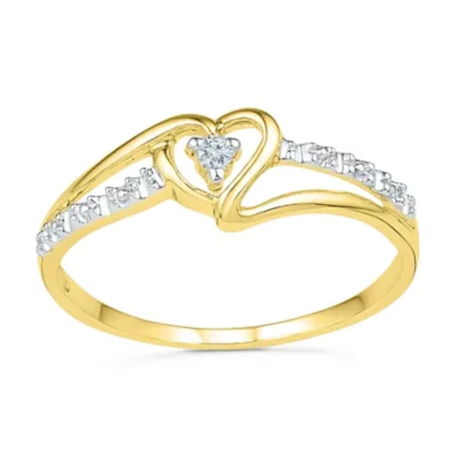 Womens Diamond Accent Natural White Diamond 10K Gold Heart Delicate Cocktail Ring