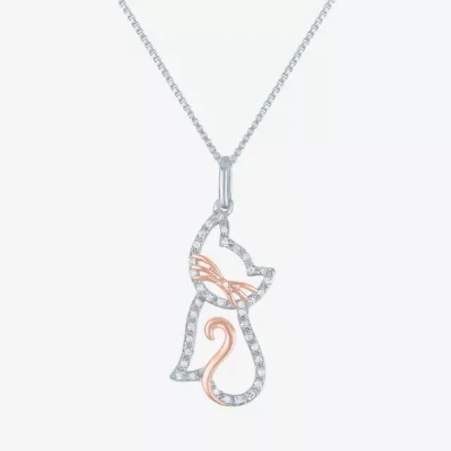 Cat (G-H, Si2-I1) Womens 1/10 CT. T.W. Lab Grown White Diamond 14K Two Tone Gold Over Silver 18 Inch Pendant Necklace