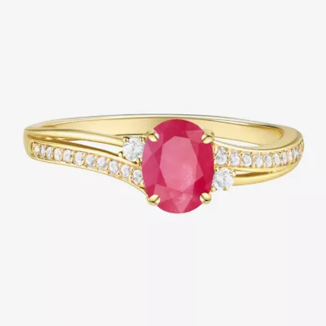 (J-K/I2-I3) Womens Gemstone and 1/10 CT. T.W. Natural Diamond 10K Gold Oval Side Stone Cocktail Ring