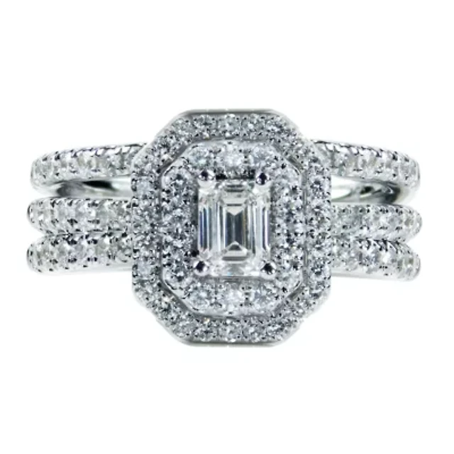Womens 1 1/2 CT. T.W. Natural White Diamond 14K Gold Side Stone Halo Bridal Set
