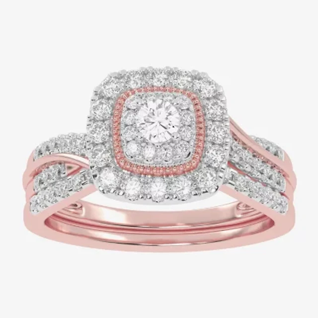 Womens 1 CT.T.W. Natural Diamond 10K Rose Gold Bridal Set