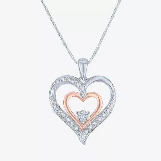 G-H / Si2-I1 Womens 1/10 CT. T.W. Lab Grown White Diamond 14K Rose Gold Over Silver Heart 18 Inch Pendant Necklace