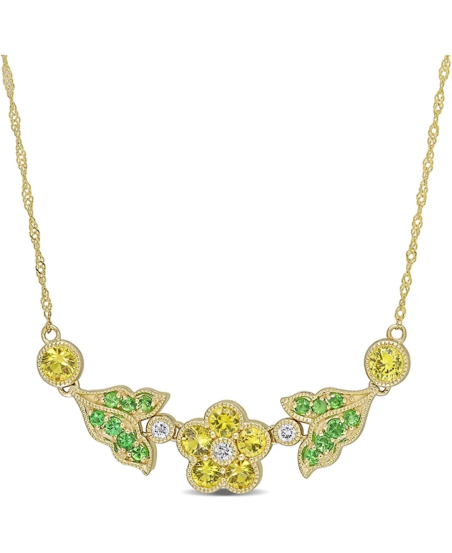 Yellow Sapphire (1-1/5 ct. t.w.) & Tsavorite (1/5 ct. t.w.) Flower & Leaf 17" Statement Necklace in 10k Gold