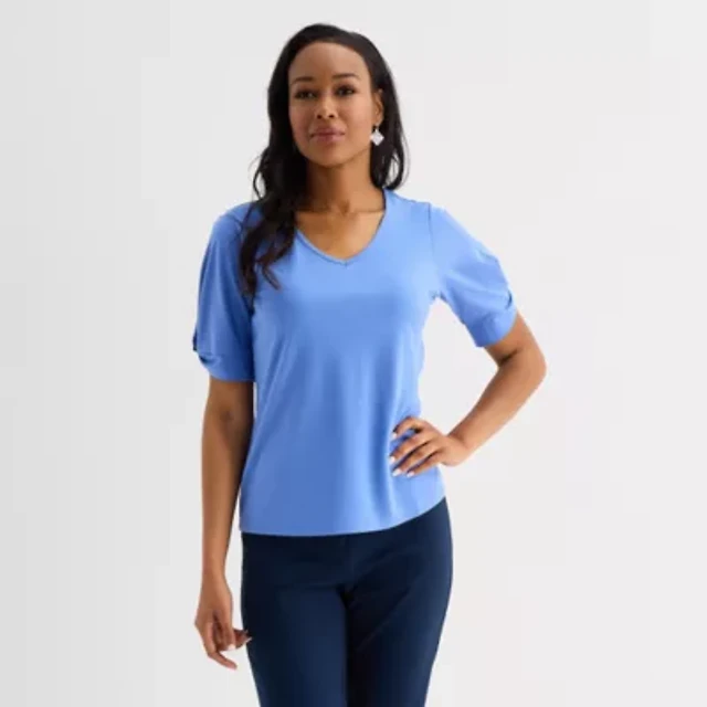 Liz Claiborne Womens V Neck Elbow Sleeve Blouse