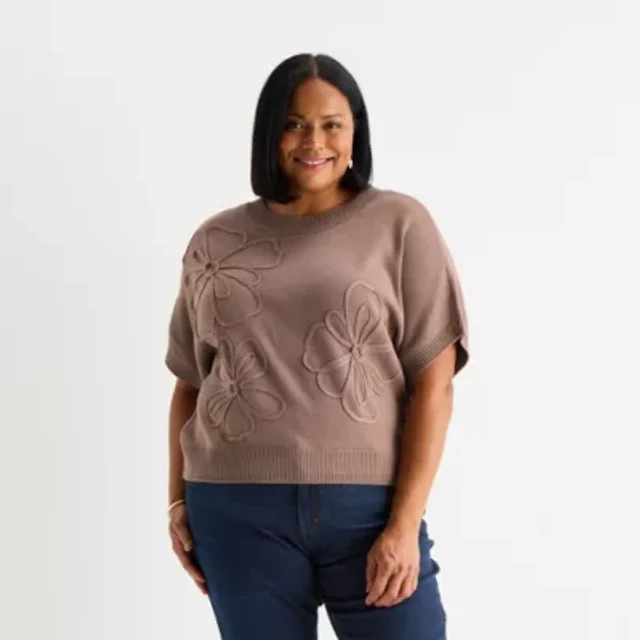 a.n.a Plus Womens Crew Neck Short Sleeve Pullover Sweater