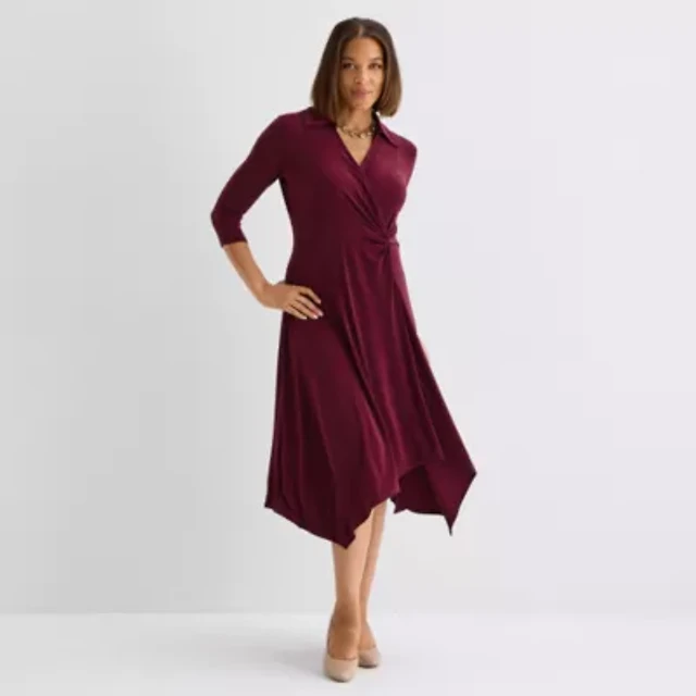 Dkny Women's 3/4 Sleeve V-Neck Fit & Flare Dress