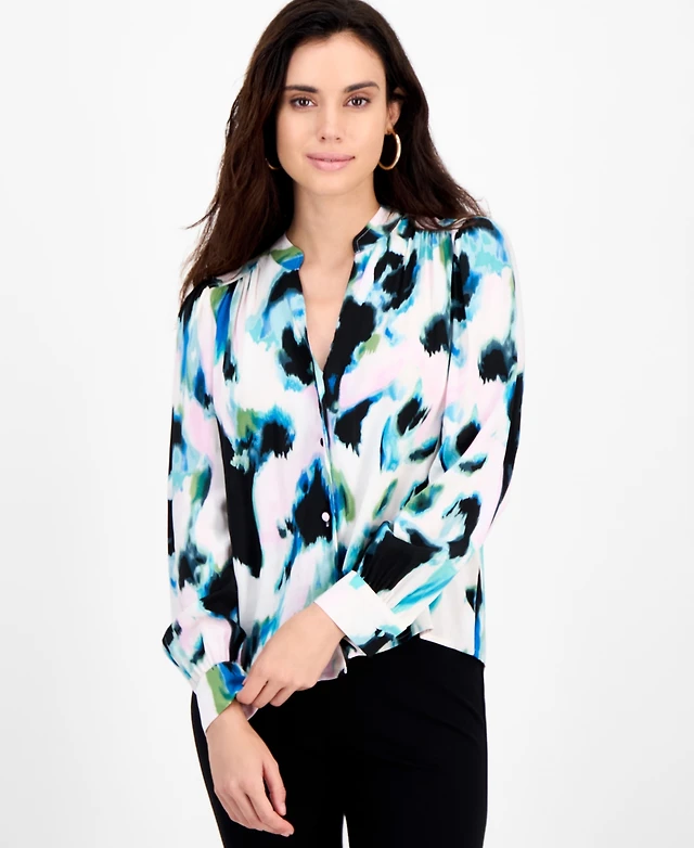 I.n.c. International Concepts Women's Printed Long-Sleeve Blouse, Macy's Exclusive
