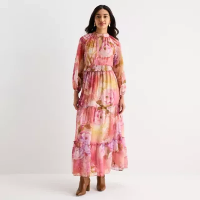 Clover And Sloane Womens Long Sleeve Floral Maxi Dress