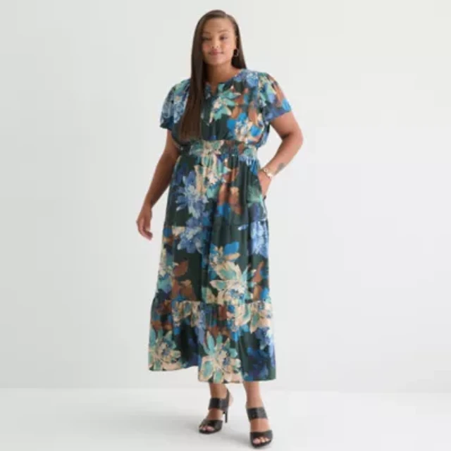 Vince Camuto Women's Floral-Print Split-Neck Short-Sleeve Blouse