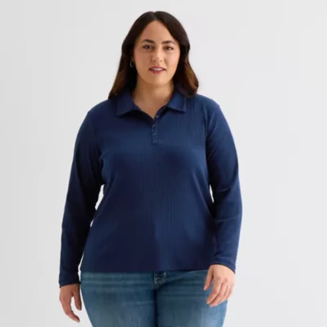 Worthington Womens Y Neck Short Sleeve Polo Shirt