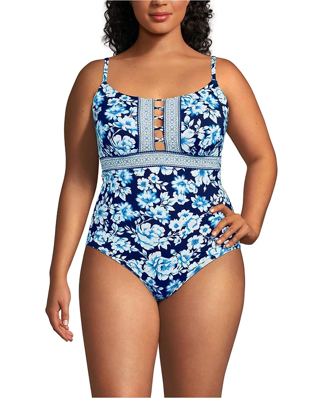 Lands' End Women's Chlorine Resistant Shine V-neck Halter Tankini Swimsuit Top