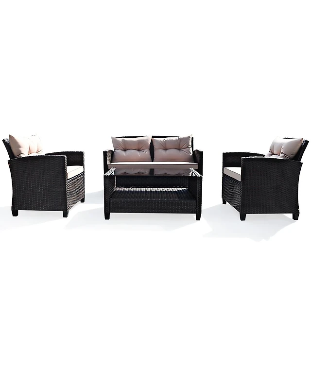 Sugift 4 Pieces Patio Wicker Furniture Conversation Sets with Coffee Table and Cushions