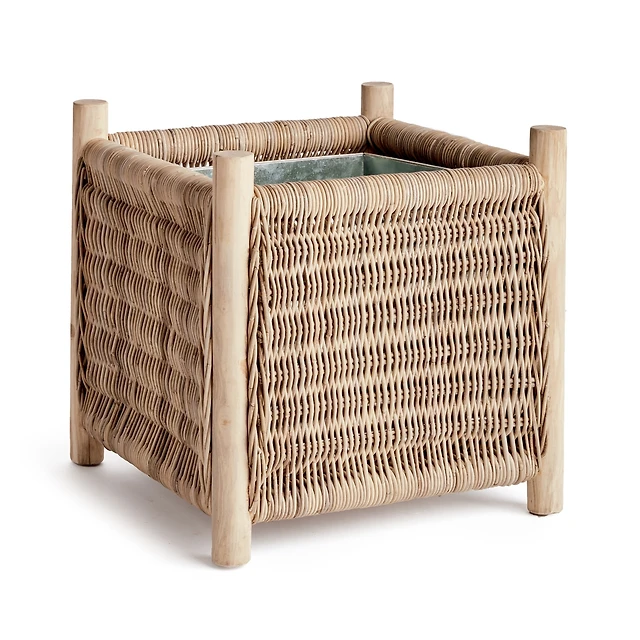 Indoor/Outdoor Square Acacia Wood Planter Box with Plastic Liner - 3pk - Light Brown Stain