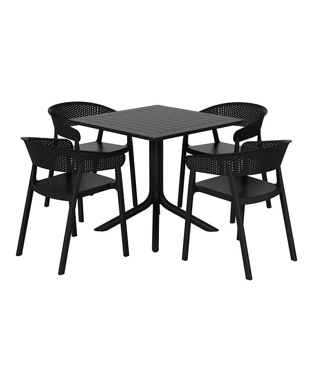 5-Piece Outdoor Resin Square Patio Dining Table Set with Modern Stackable Chairs