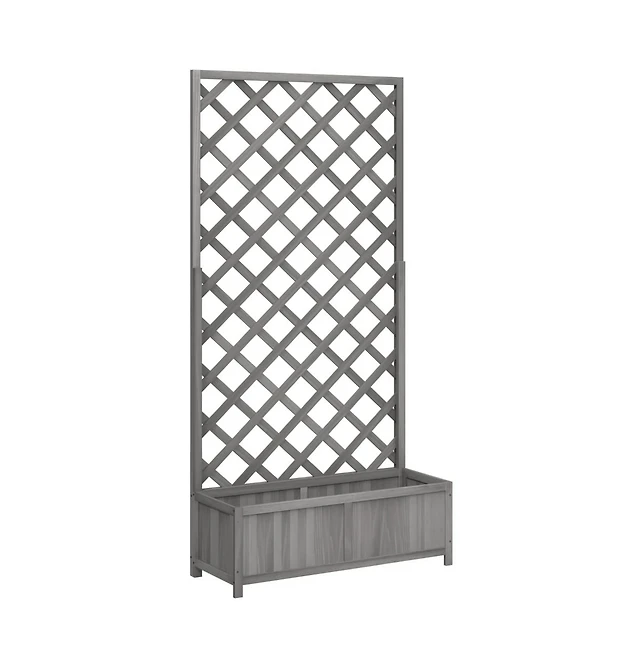 Planter with Trellis Gray Solid Wood Fir
