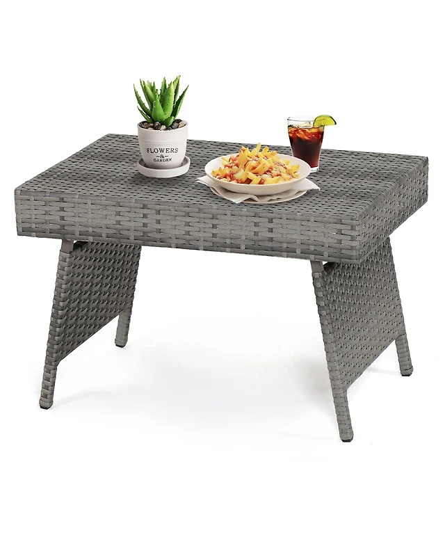 3PCS Patio Folding Rattan Bistro Set Chairs Backrest Table Garden Deck
