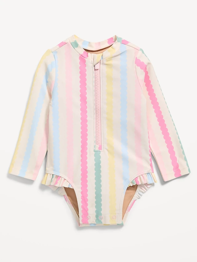 Printed Zip-Front Rashguard One-Piece Swimsuit for Toddler Girls