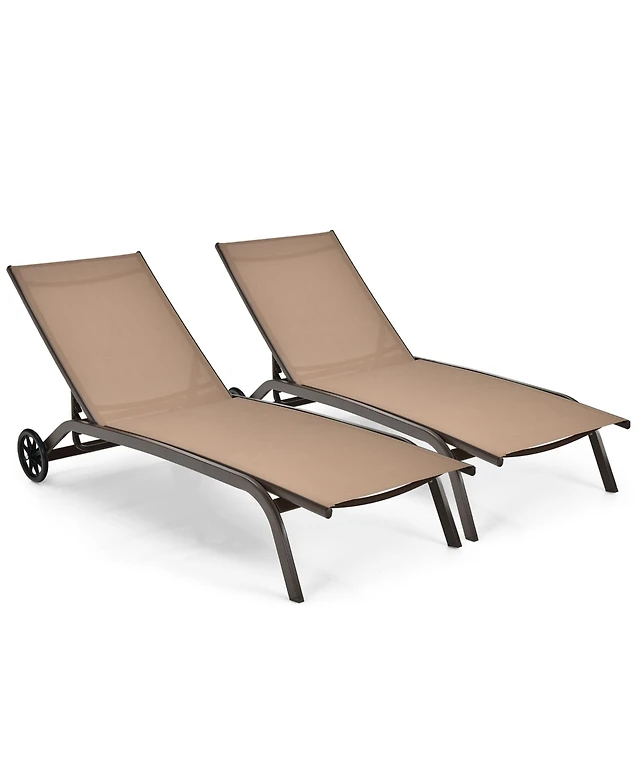 2PCS Patio Lounge Chair Chaise Adjustable Back Recliner W/Wheels