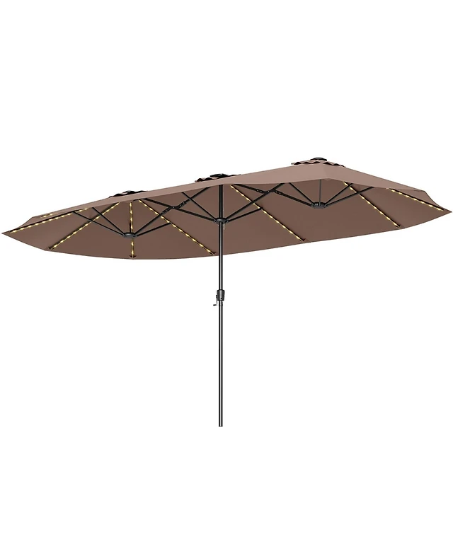 15 Feet Twin Patio Umbrella with 48 Solar Led Lights