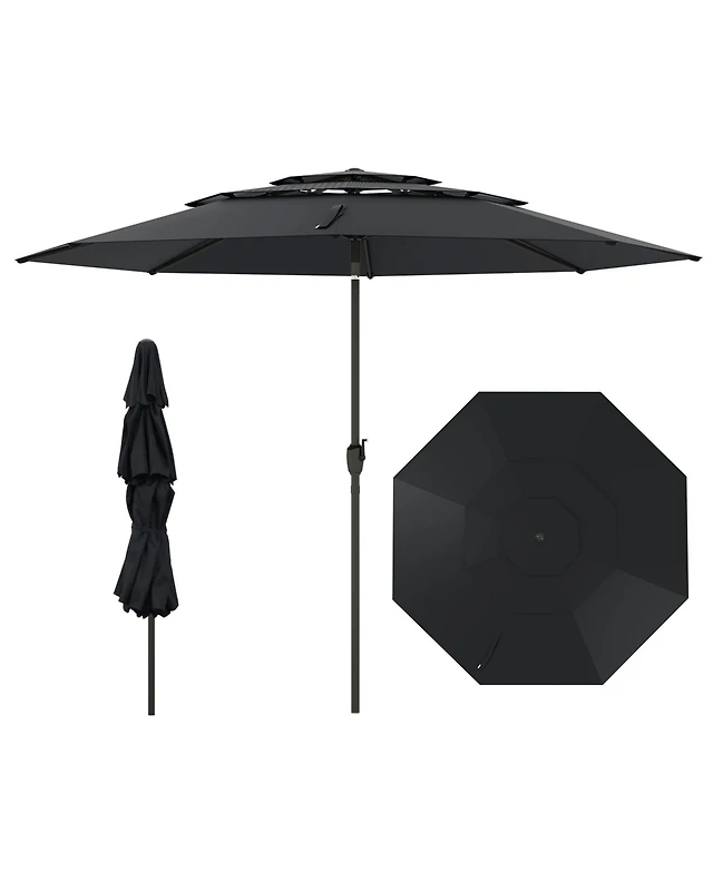 Outdoor Aluminium 10ft 3 Tier Auto-tilt Patio Umbrella