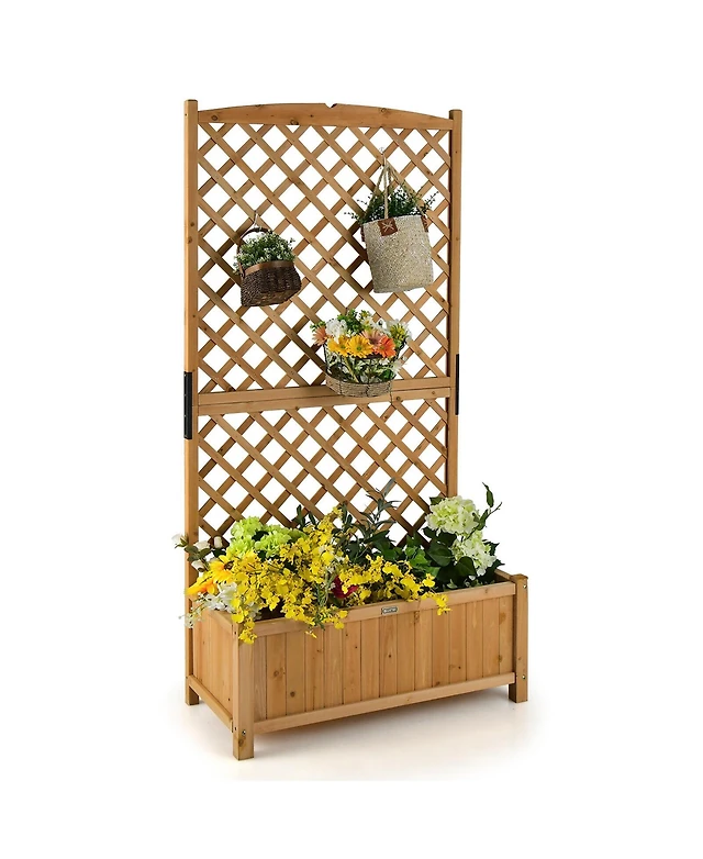 3-Panel Fir Wood Outdoor Privacy Screen with 4 Garden Bed Planters for Patio