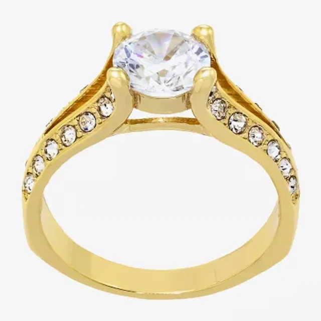 Sparkle Allure Split Shank Solitaire Womens Cubic Zirconia 14K Gold Over Brass Round Engagement Ring
