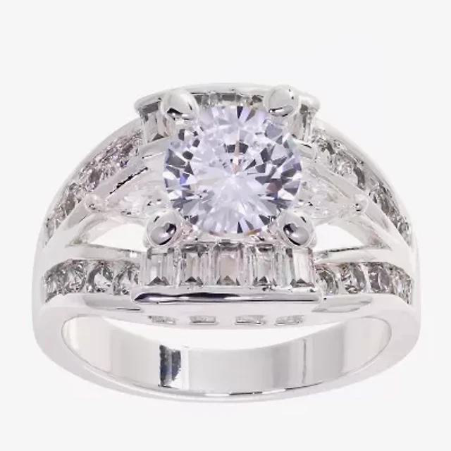 Sparkle Allure Split Shank Womens Cubic Zirconia Pure Silver Over Brass Round Engagement Ring