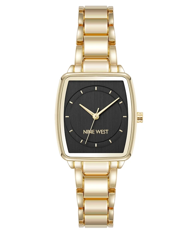 Anne Klein Women's Quartz Cushion Black and Gold-Tone Metal Alloy Watch, 26mm